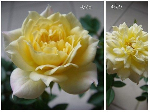 4/27 一早起床, 探頭一看, 已經盛開了, 心情真是開心, 也移到室內, 今晚一下班, 就有美麗的黃玫瑰等著我嚕