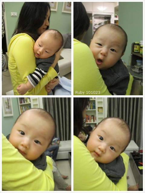 我抱他, 姿勢一整個不對, 風哥表情說明一切><