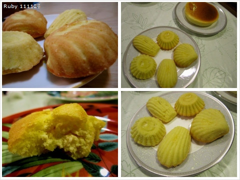 Madeleines是法國的宮廷點心, 貝殼造型, 起源於1730年, 是具有蛋糕口感的餅乾, 最近我好像跟17**年特別有緣, 烘烤後, 上方必須有一個淡金色圓型的隆起肚, 整體需呈現金黃色澤, 外圍有一圈不焦的蜜糖色, 剛出爐則是外酥內軟, 以此描述, 我的色澤….要再調整