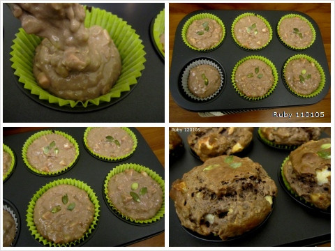 但腦海中一直浮現Muffin-2作的食譜內容: 起司香蕉巧克力Muffins